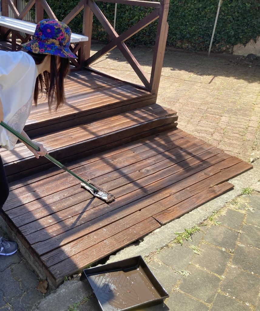 - ブラッシング: デッキブラシやたわしで、木目に沿って丁寧に擦り洗いします。