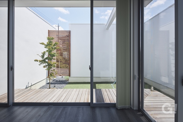 「伸び伸びとした空間と庭・プライバシーを守れる家」 空間構成では庭を内包するように光壁をつくっています。 白く凛とした佇まいの外観がとても施主様にお似合いのご住宅になったと感じます。 またご家族で楽しむ”音楽室”は、置かれた楽器の煌きに誘われるとても素敵な場所となっています。