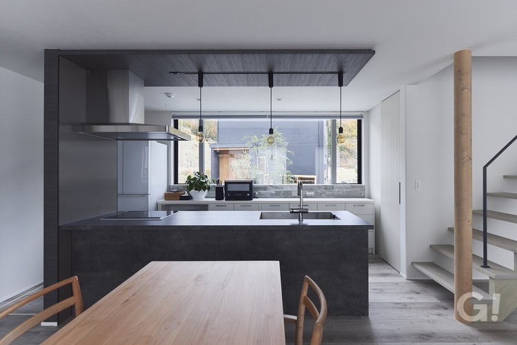 オーク無垢床が印象的なリビングには、木板仕上げの大きな吹抜けを配し、中庭と連続性を持たせることで心地良さが際立つようにしています。中庭にはカツラの樹を植樹し、お子様とともに成長する過程を温かく見守っています。 時間の経過とともにお施主様の色に馴染んでいく…そんな住まい手に寄り添った心地良い住宅になりました。