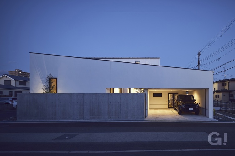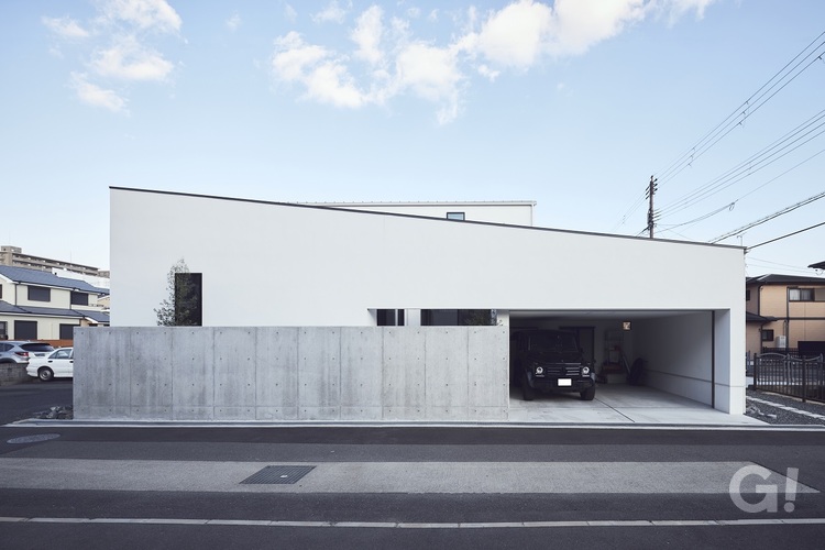 2台のビルトインガレージ、中庭に続くリビング。バスルームやエントランスからアイストップとなる坪庭、のある住宅です。