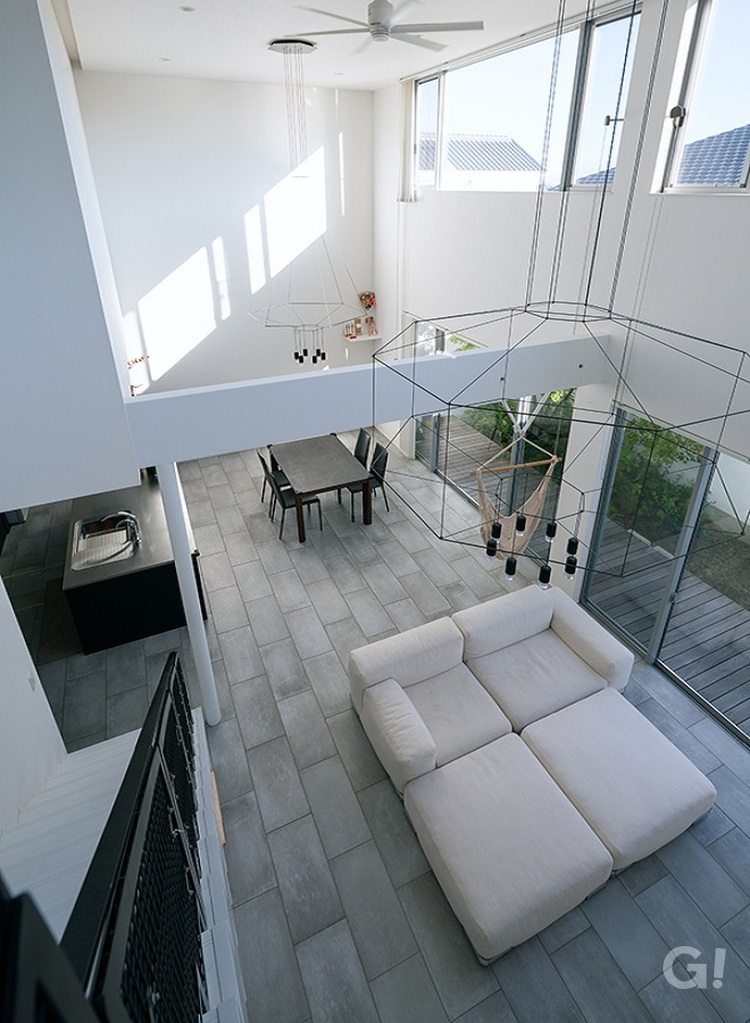 白い外壁(光壁)に反射させた光を室内に多く取り入れられるので、
