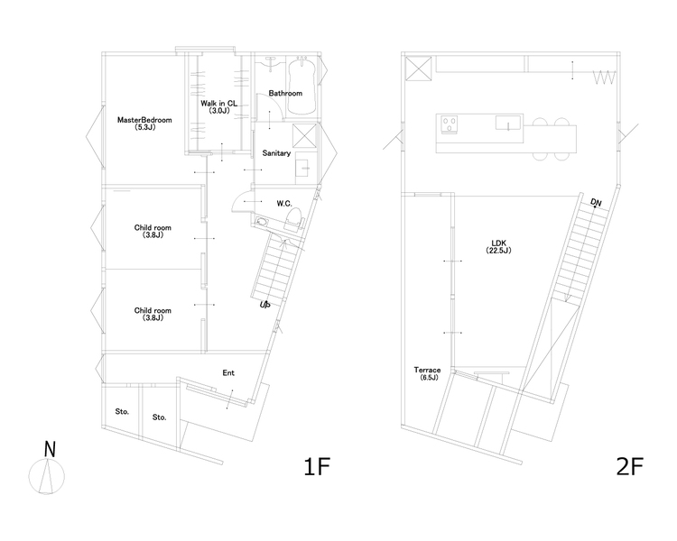 敷地の斜辺を利用して外壁も添うように斜辺に