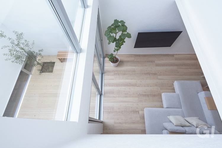 プライバシーを守る、心地いい家。庭を内包して、LDKから中庭を隔てた離れの和室まで動線が真っ直ぐに通る空間。自由で開放感がありつつ、外の世界をすっかり忘れて寛げる、別世界な生活を楽しむお家。