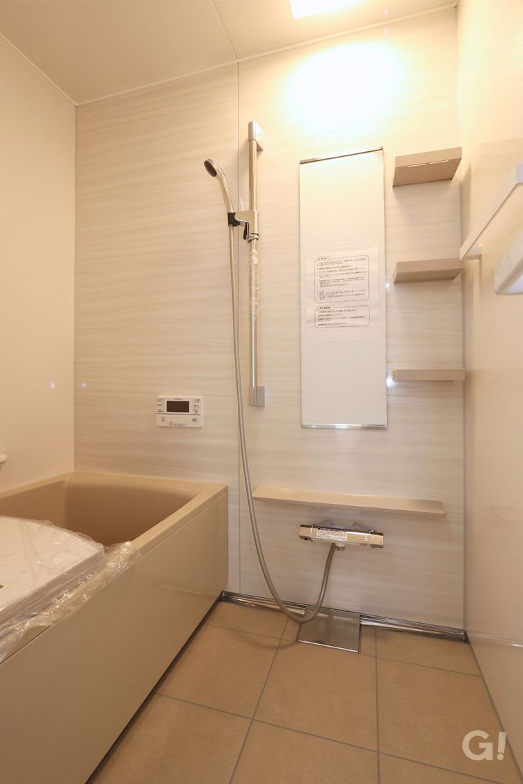 洗面のすぐ横に浴室を配置し、脱衣・洗濯・入浴までの動線がスムーズになるよう工夫しました。