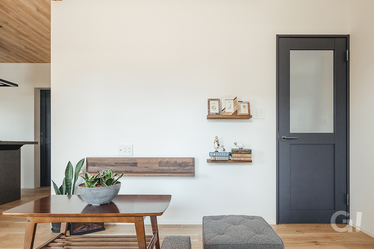 白を基調としたなかで、飾り棚や引き戸がアクセントとなり、空間が引き締まります。
