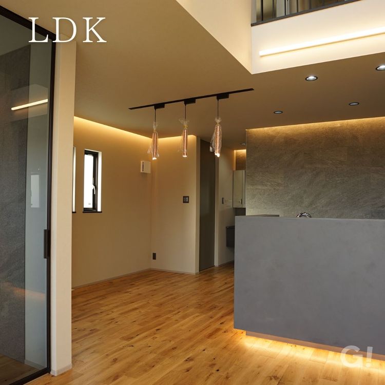 LDK、洗面、トイレといった生活空間の随所に間接照明(テープライト)をふんだんに取り入れ、