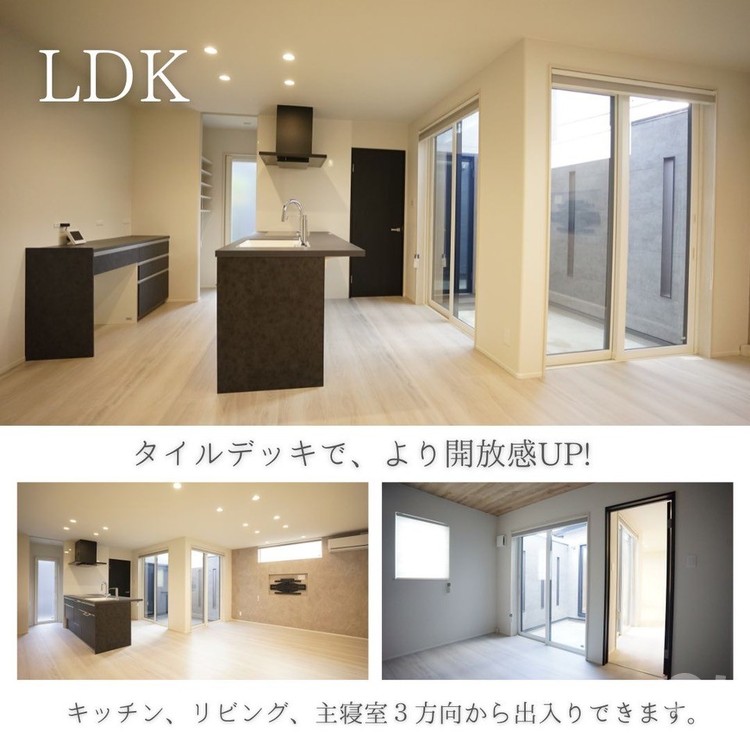 1. 内と外が繋がる「タイルデッキ」のあるLDK リビングの大きな窓を開けると、