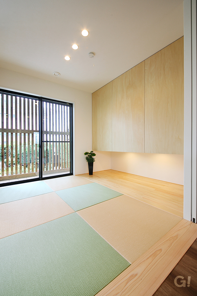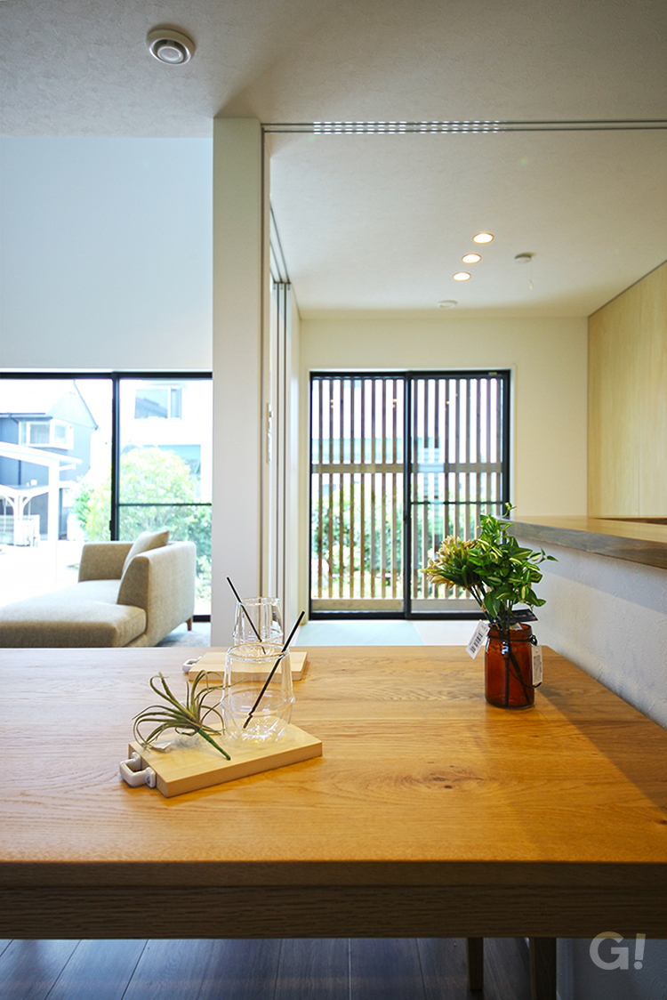 家の外側、大胆な格子で程よく外からの視線をカット。縁側とも良く合っています◎ 家の中からの景色も和を感じられ、ホッとしますね! モダンと和を合わせた、今時のお家でありながら昔からの日本の良さを感じるお家です。