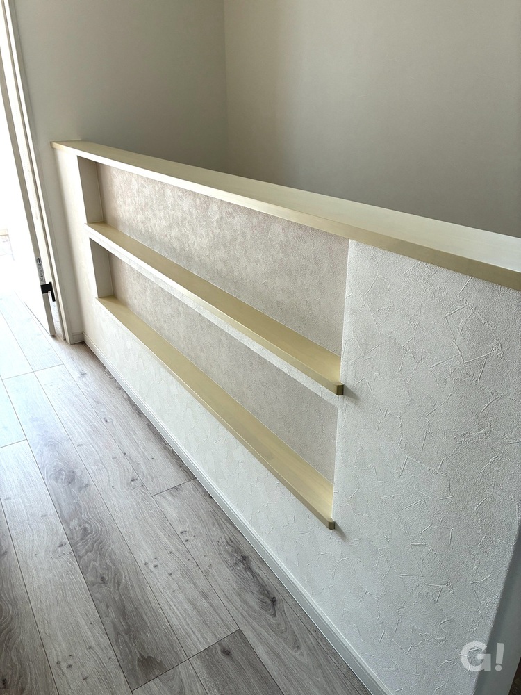 玄関や2階ホールには、お気に入りの小物を飾れるニッチを造作。奥のクロスを統一することで、お家全体にまとまりを持たせています。