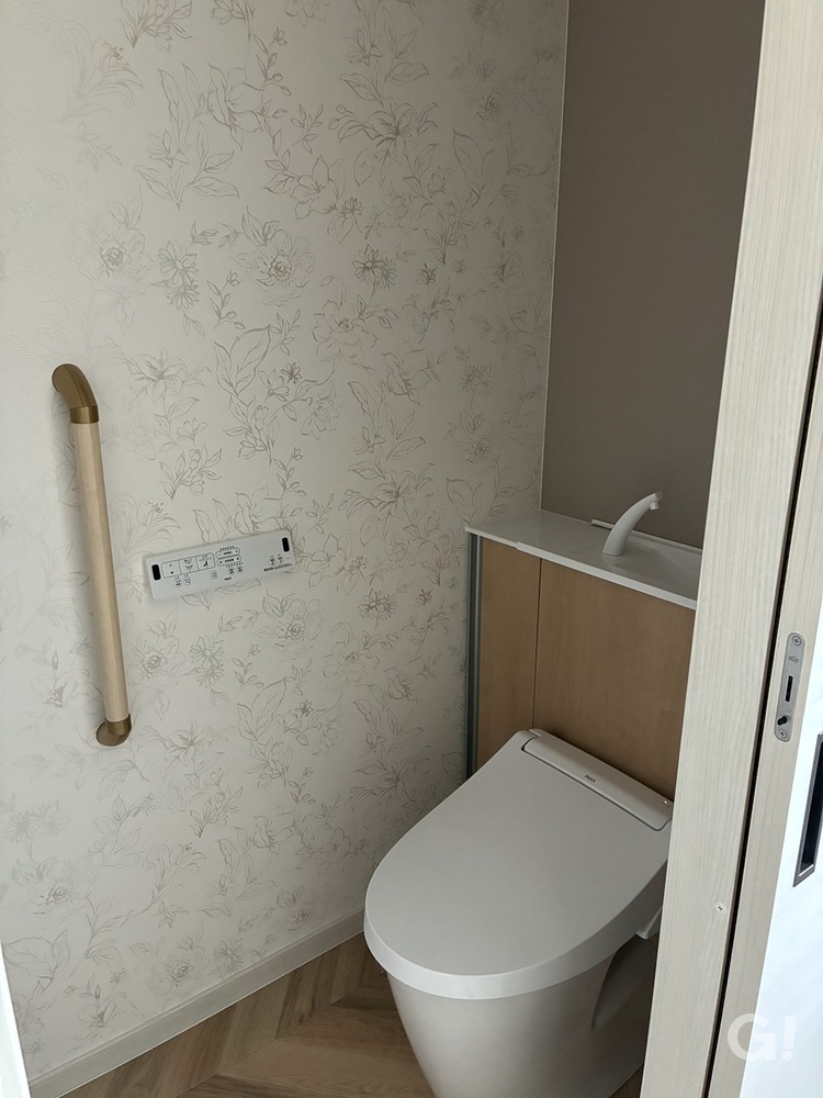 タンクや配管をキャビネット内に隠せるトイレを採用。限られたスペースでも収納力を確保し、生活感のないスッキリとした空間に仕上げました。
